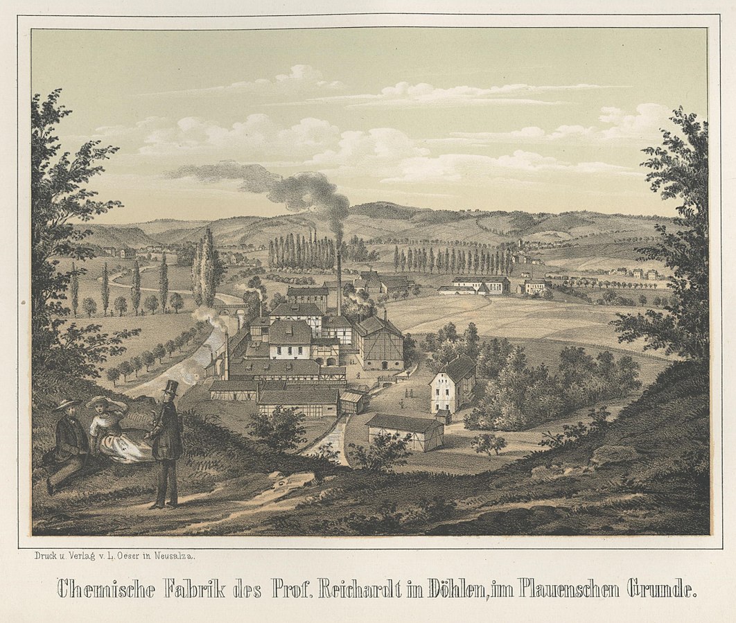 - Beschreibung: Chemische Fabrik des Prof. Reichardt in Döhlen, im Plauenschen Grunde