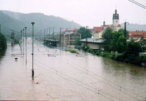 | Beschreibung: | Bahnhof Potschappel während des Hochwassers 2002 |